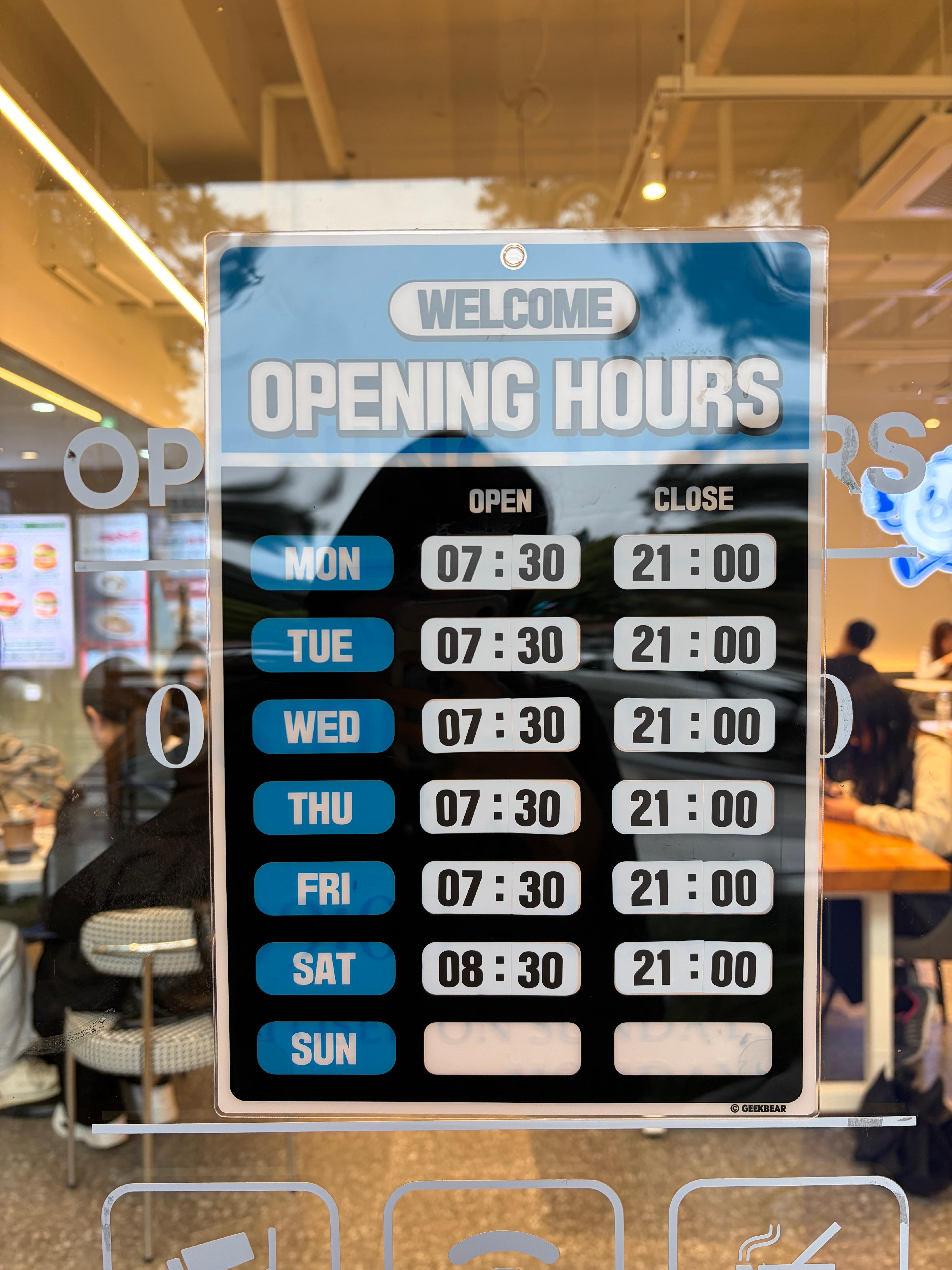 * 영업시간 : 월-금 7:30 - 21:00 / 토 8:30 - 21:00 / 일요일 휴무