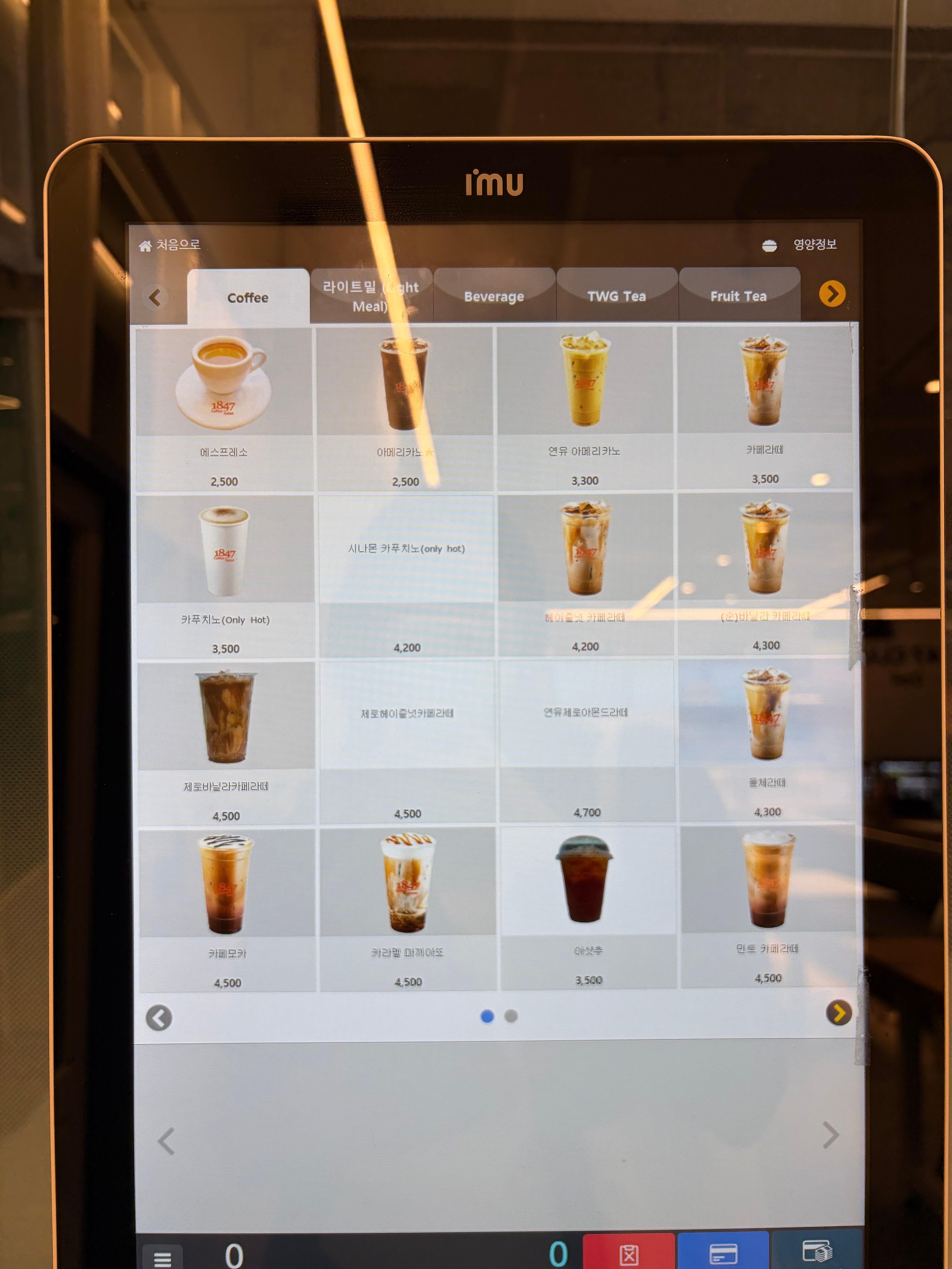 기본적인 커피! 가격대는 아메리카노 2500원 부터 라떼 베리에이션들은 4500원 정도까지 하네요 ㅎ