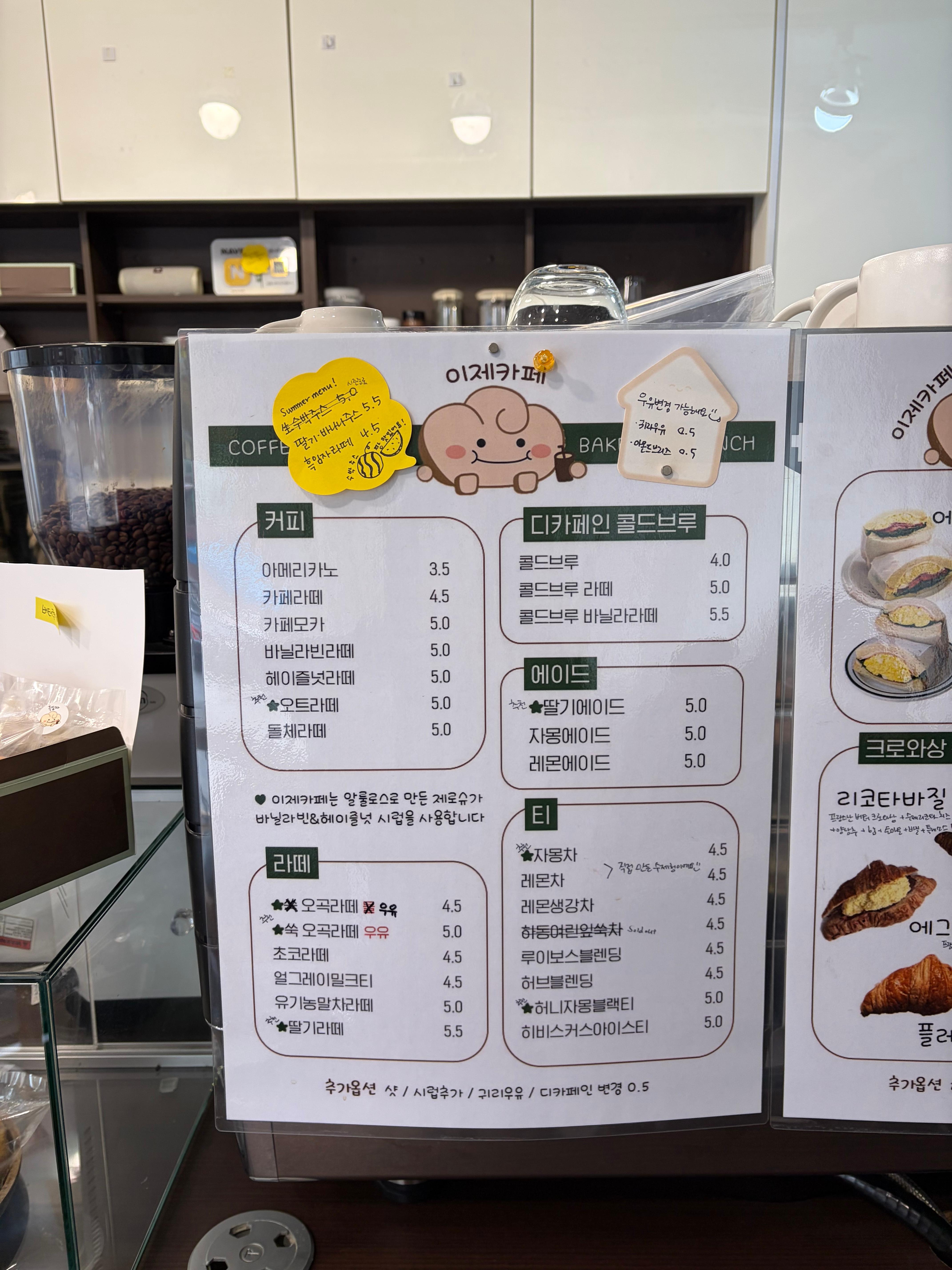 커피와 브런치 메뉴들은 이렇게 됩니다~ ㅎㅎ