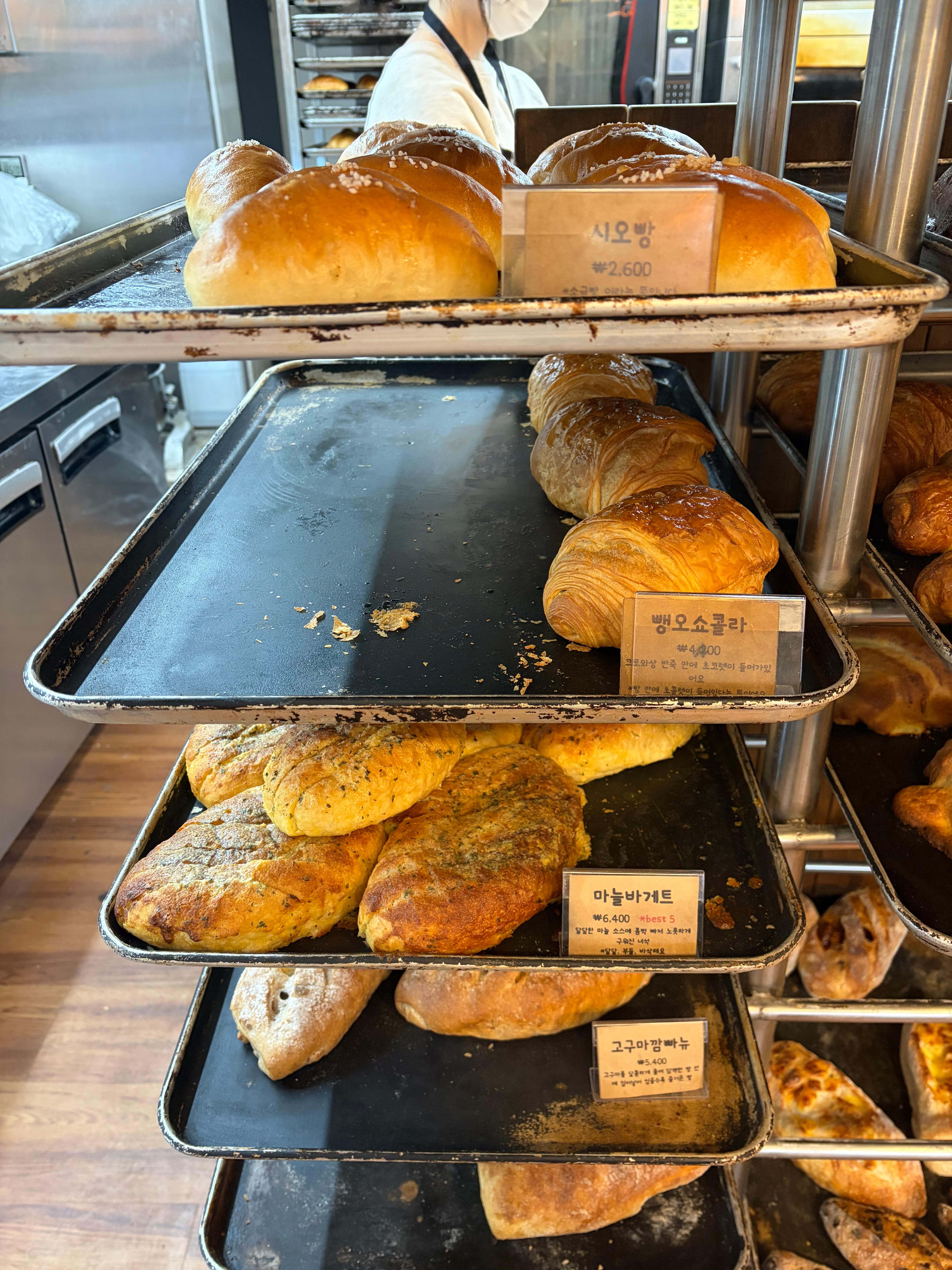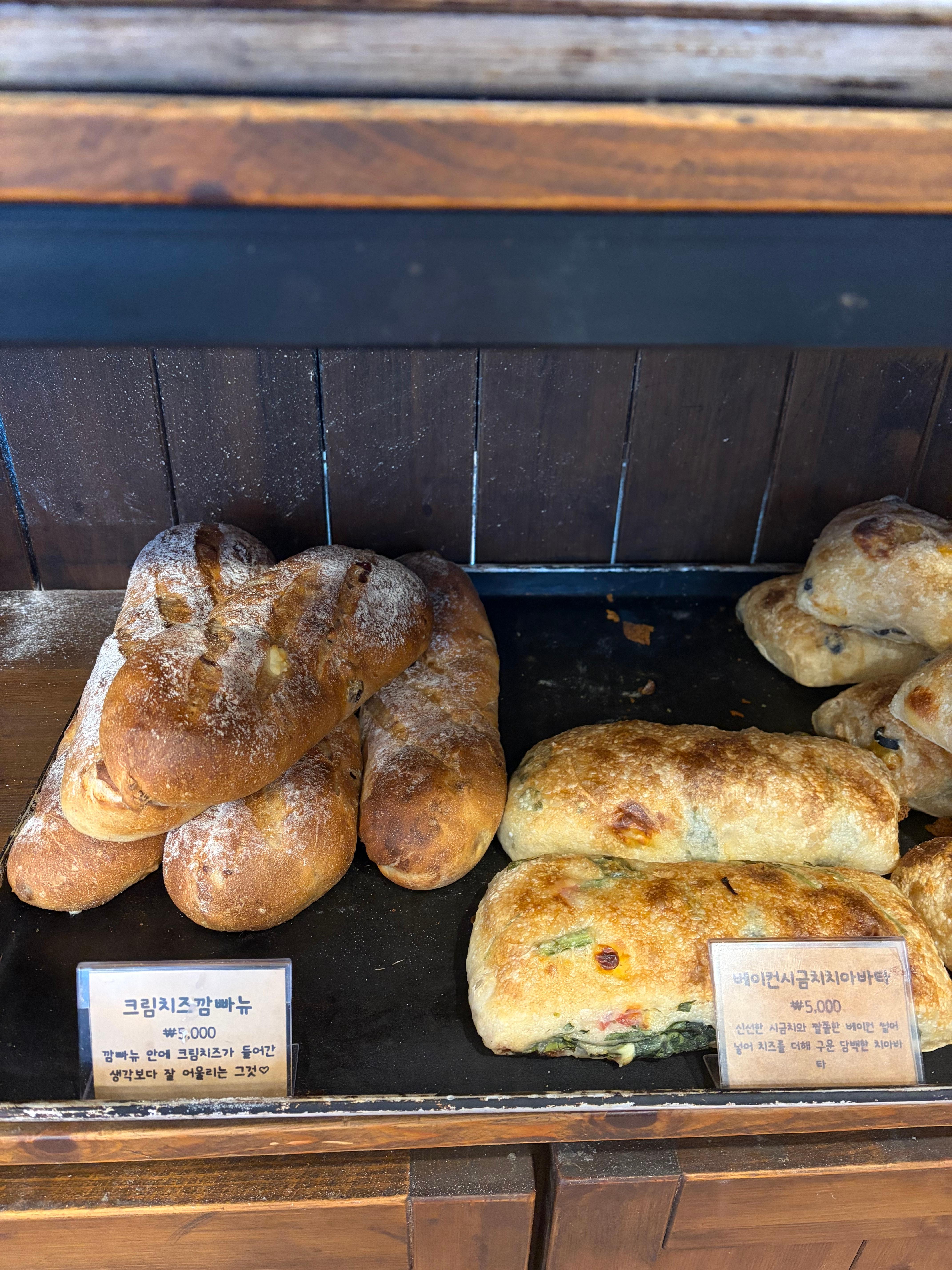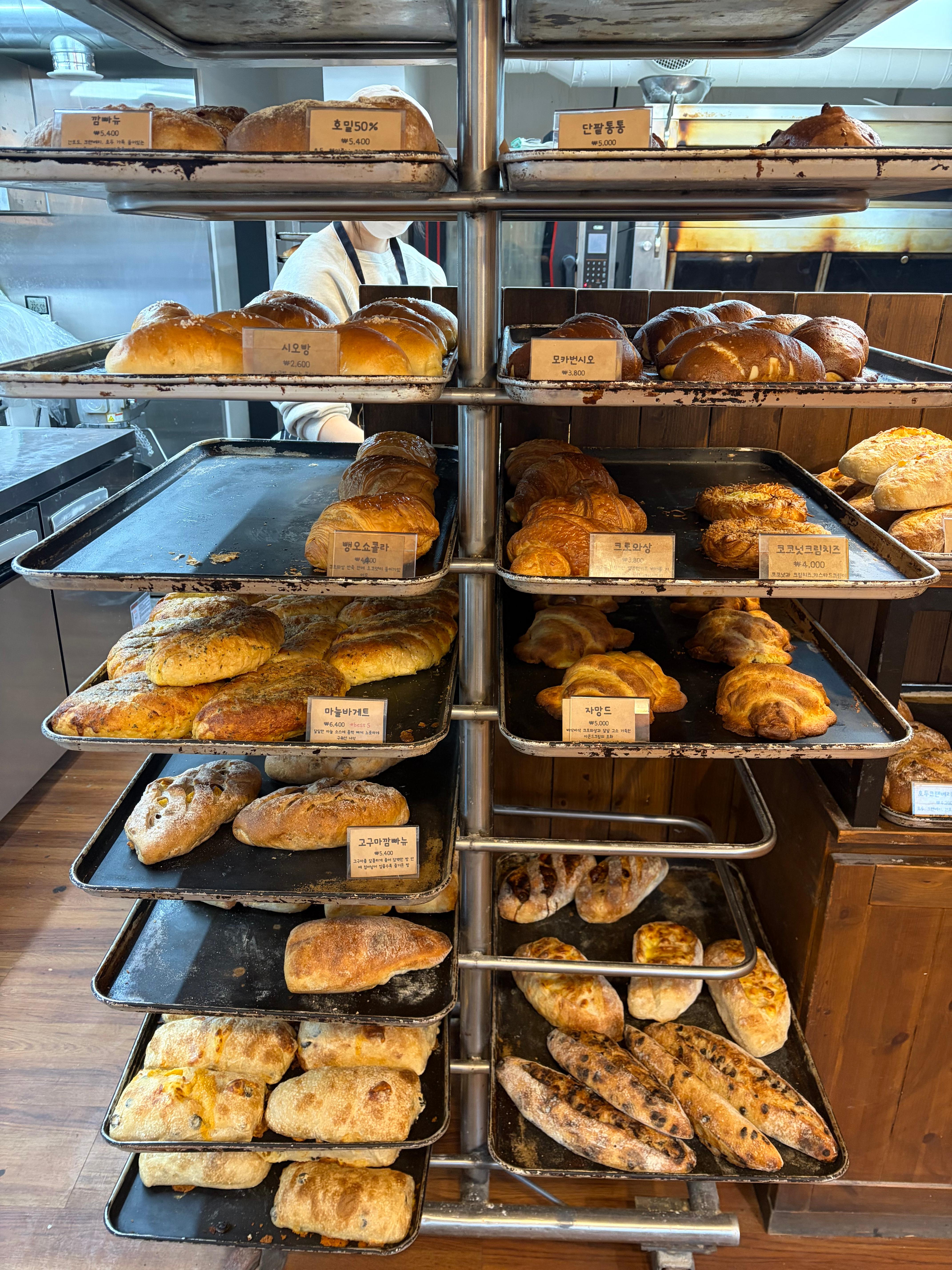 뺑오쇼콜라, 고구마 깜빠뉴, 모카번, 크로와상, 코코넛 크림치즈, 자망드.... 등등등등등