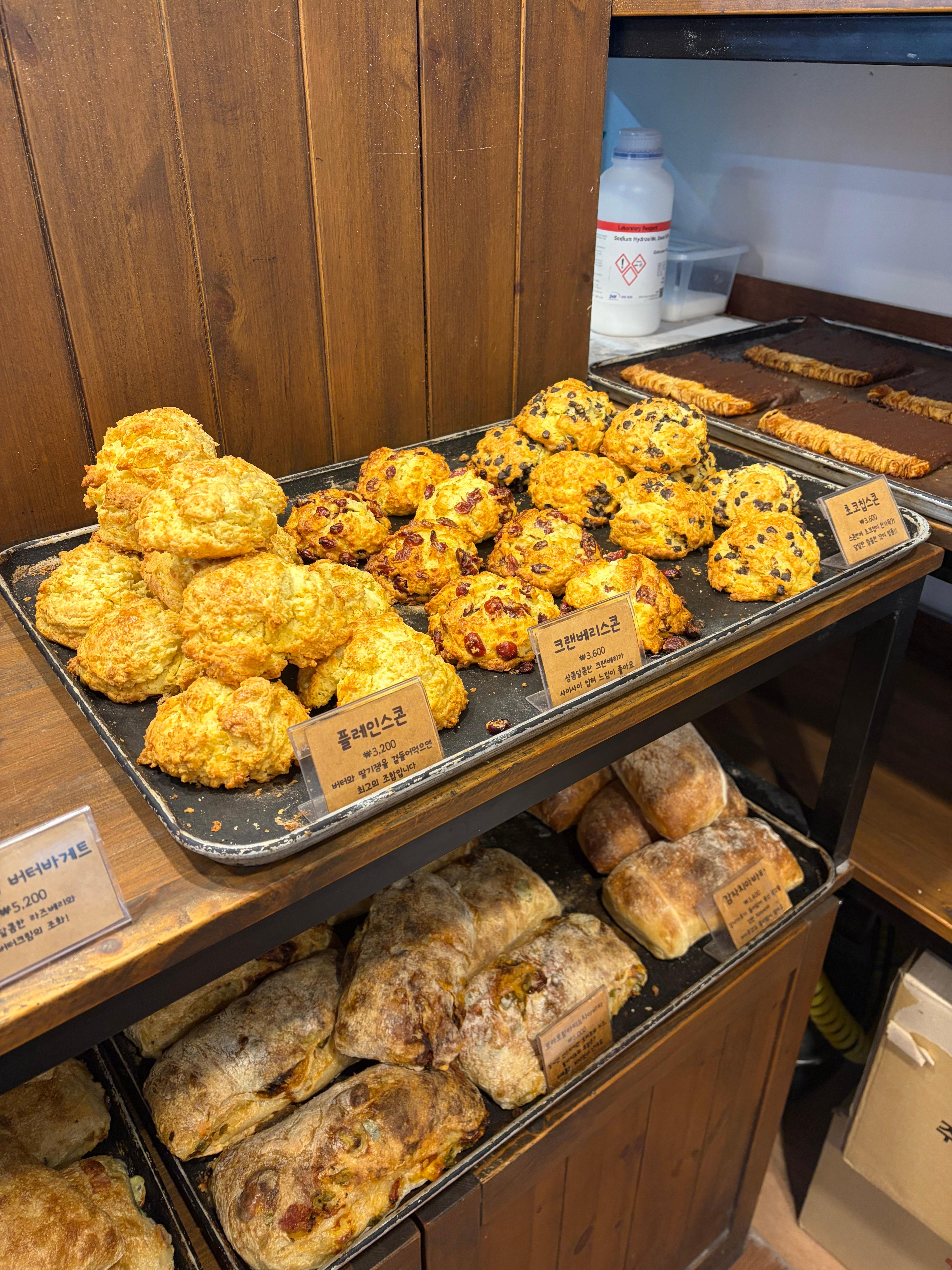 마늘바게트, 크렌베리 크림치즈 바게트, 그리고 그 옆엔 스콘들이에요 ㅎㅎ