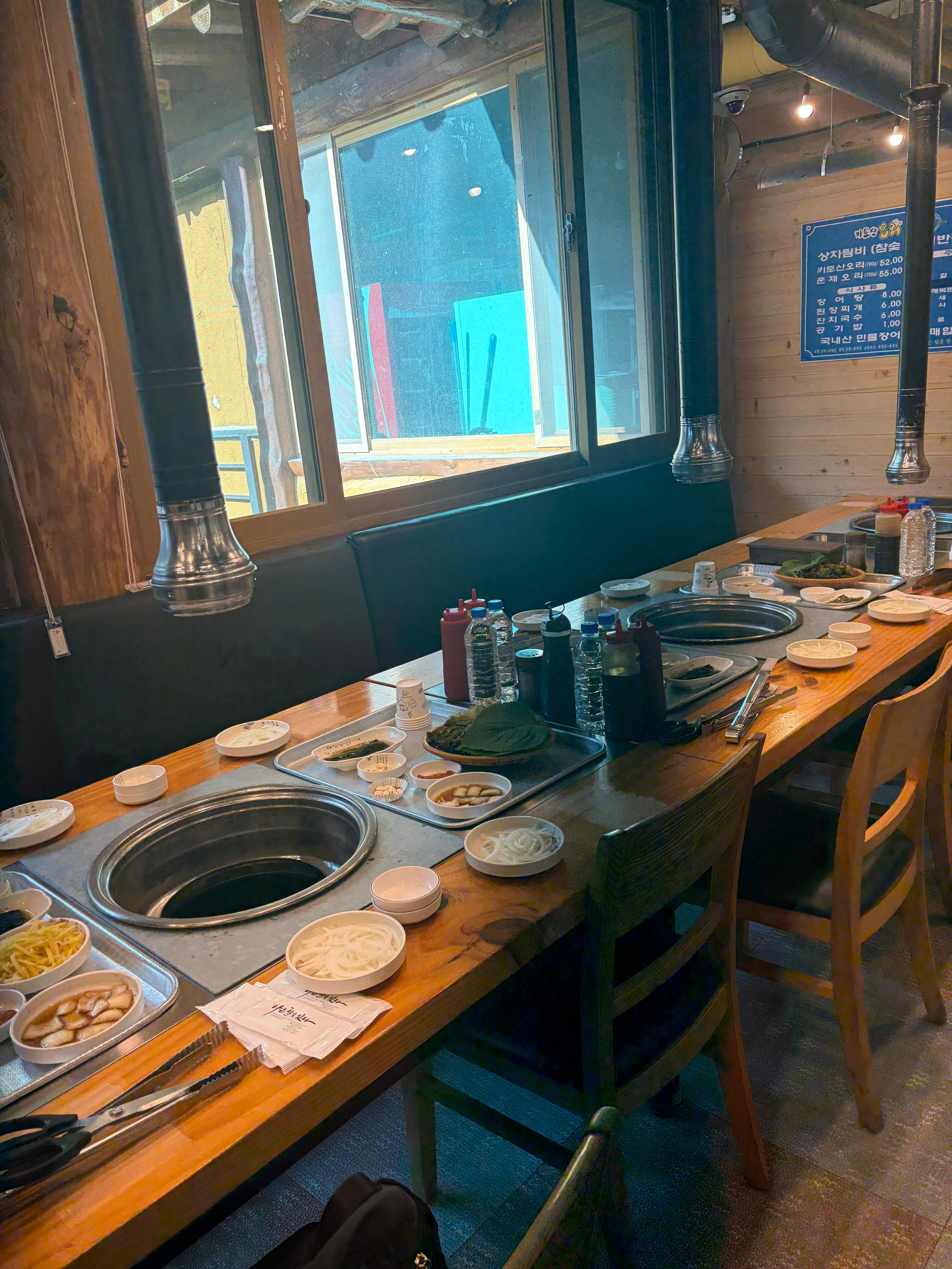 저희가 미리 예약한 ㅎㅎ 좀 분리된 공간이에요 ㅎㅎ 룸 까진 아니더라도 따로 아늑하게 식사하실 수 있습니당 ㅎㅎ