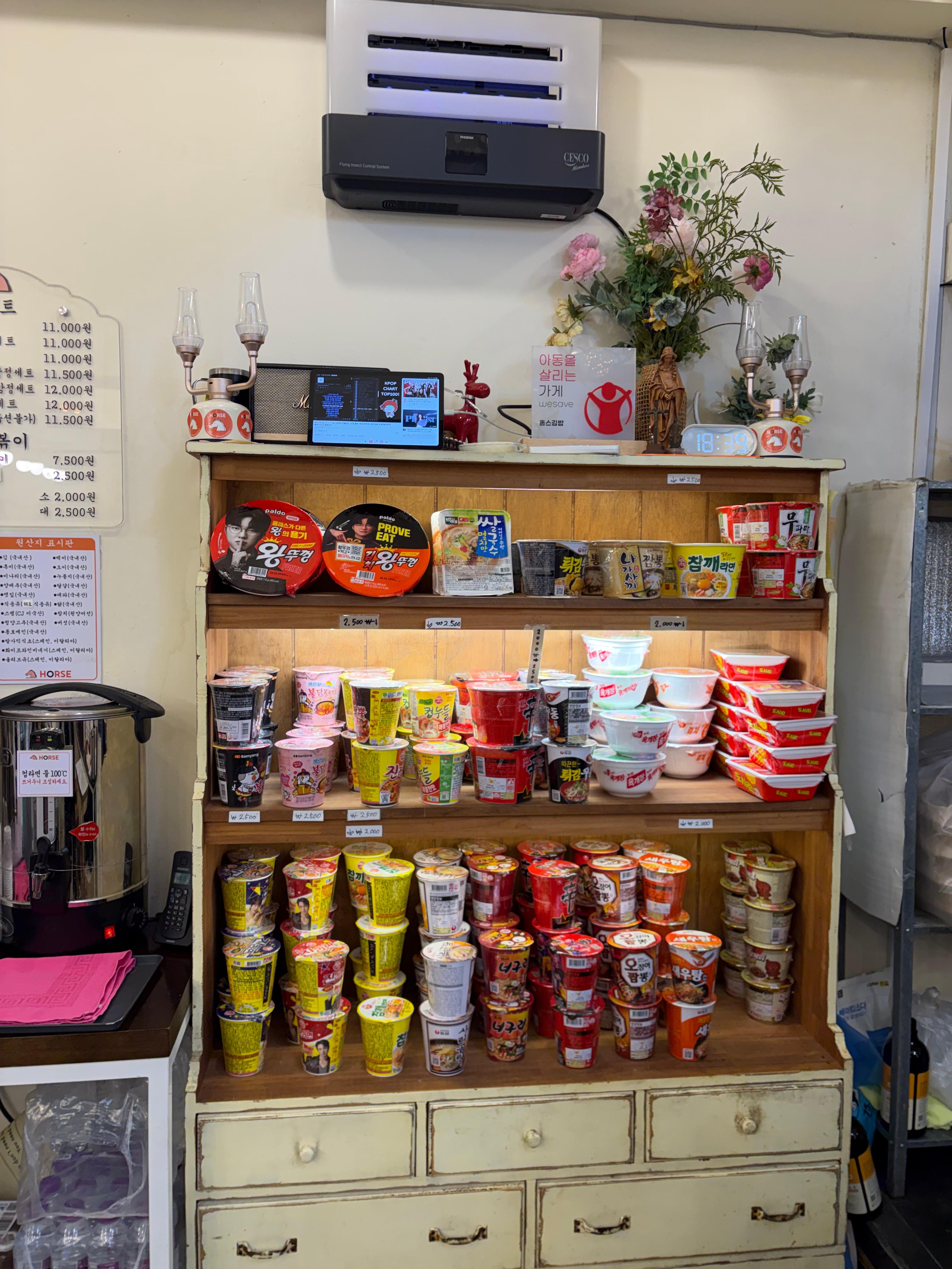 그 앞에는 가스오부시 육수와 김밥과 짝꿍 컵라면들이 진열되어 있어요 ㅎㅎ